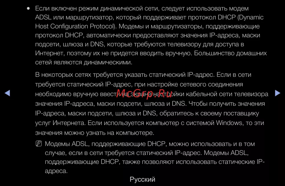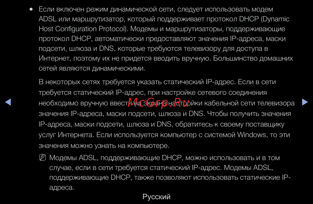 Samsung UE-40 D5520RW — настройка сетевого подключения для телевизора: DHCP и статический IP [113/319]