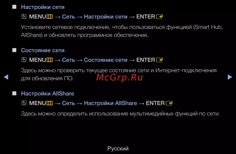 Установите сетевое подключение, чтобы пользоваться функцией (Smart Hub,