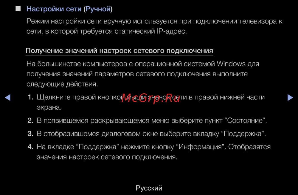 Samsung UE-40 D5520RW — настройка сети вручную для статического IP-адреса [117/319]