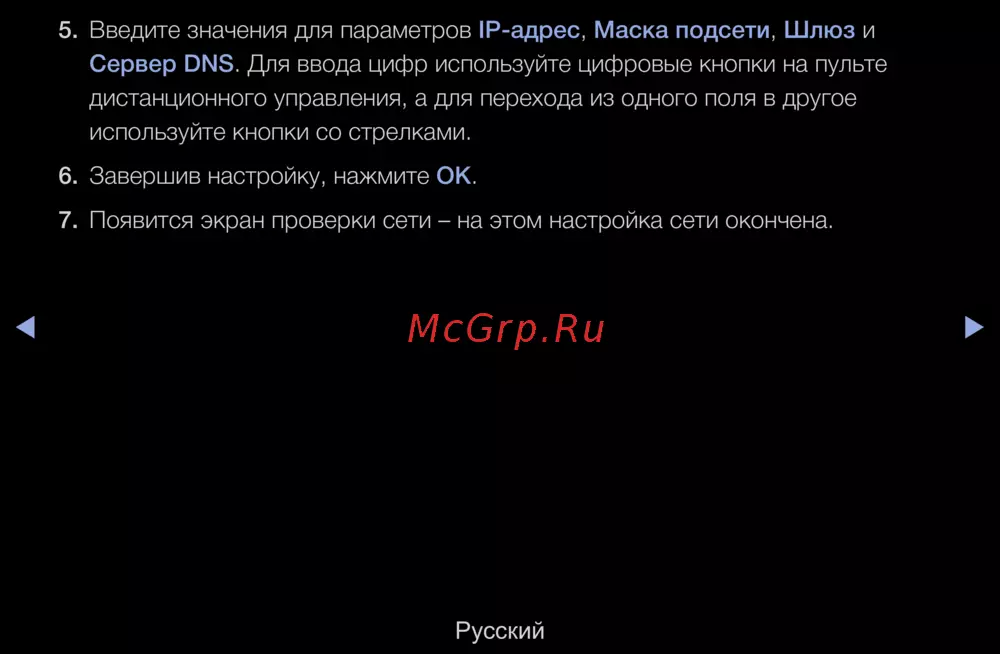 Сервер DNS. Для ввода цифр используйте цифровые кнопки на пульте