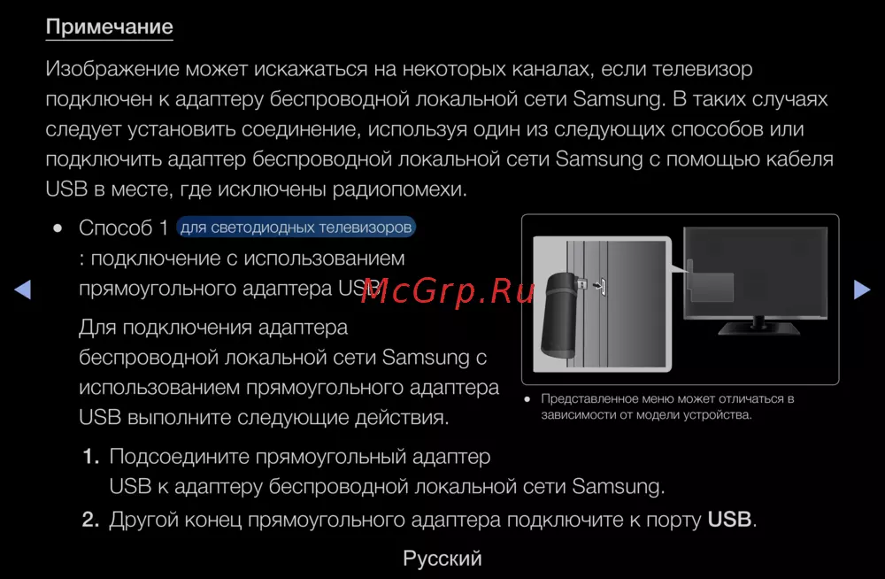 подключен к адаптеру беспроводной локальной сети Samsung. В таких случаях