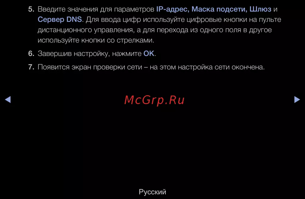 Сервер DNS. Для ввода цифр используйте цифровые кнопки на пульте
