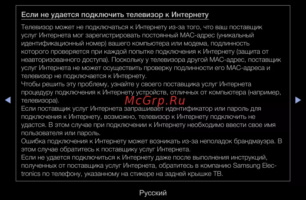 полученных от поставщика услуг Интернета, обратитесь в компанию Samsung Elec-