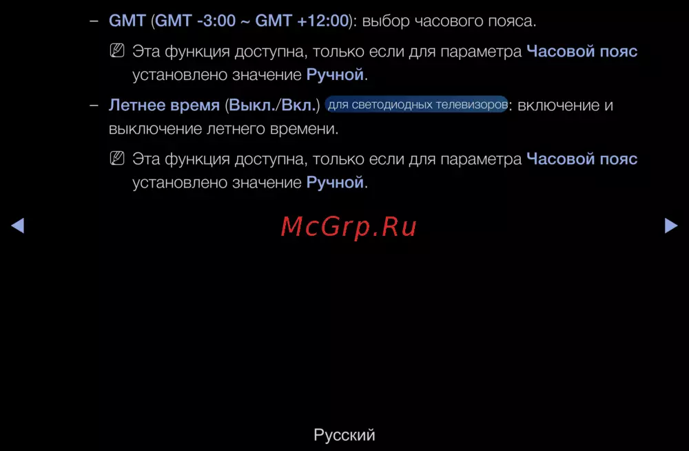 Эта функция доступна, только если для параметра Часовой пояс