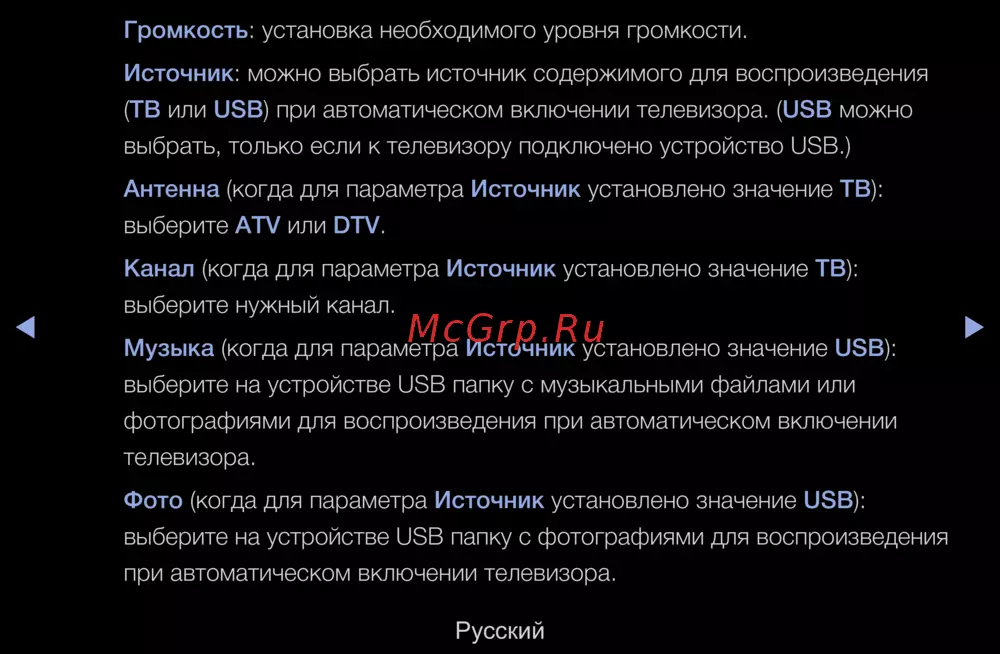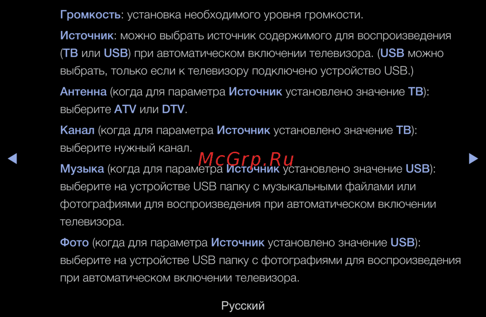 (ТВ или USB) при автоматическом включении телевизора. (USB можно