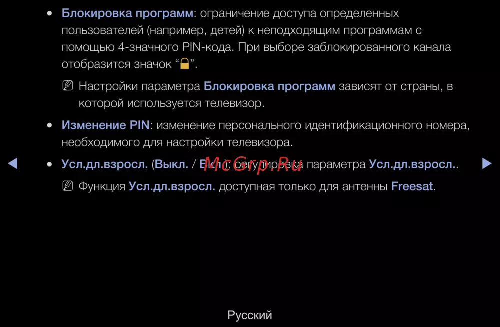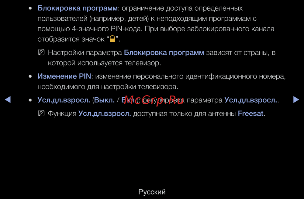 Функция Усл.дл.взросл. доступная только для антенны Freesat.