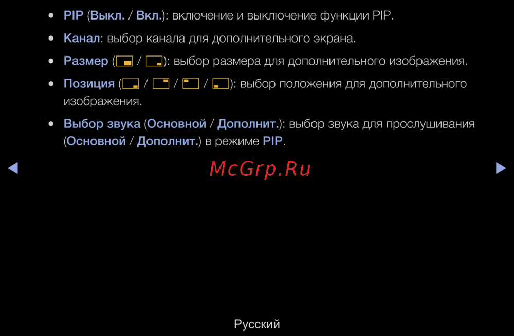 (Основной / Дополнит.) в режиме PIP.