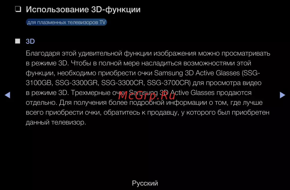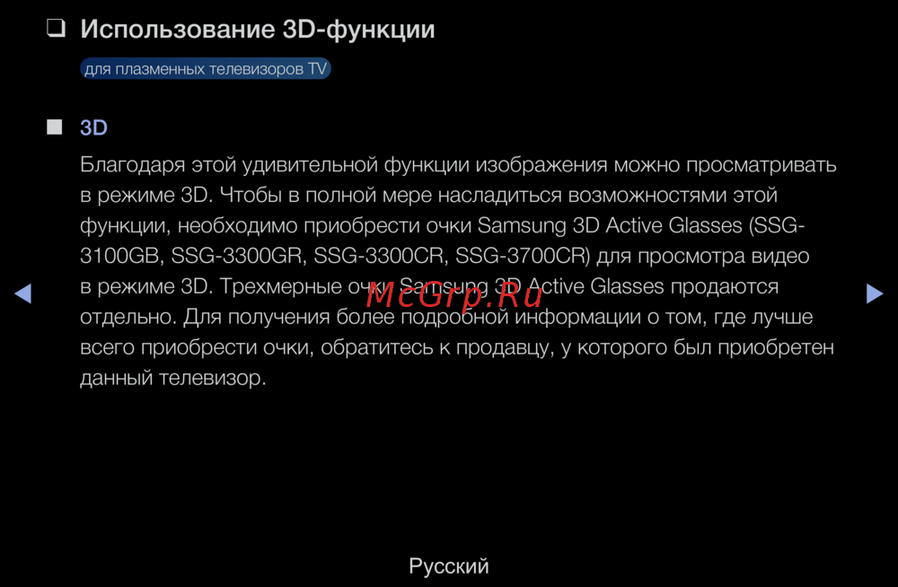 функции, необходимо приобрести очки Samsung 3D Active Glasses (SSG-