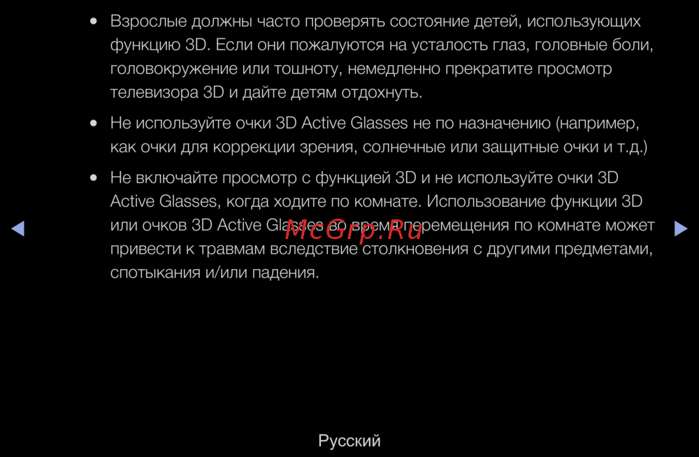 - Выключайте 3d очки когда они не используются p.288