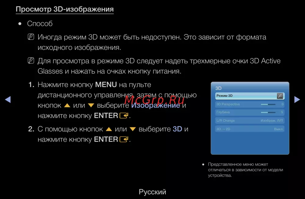 Samsung UE-40 D5520RW — как включить 3D-режим на вашем устройстве [189/319]