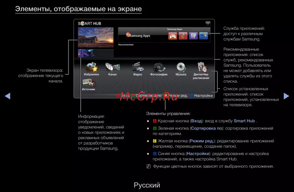 Узнайте, как управлять установленными приложениями на телевизоре, используя функции Smart Hub. Настройте сортировку, редактирование и доступ к службам.