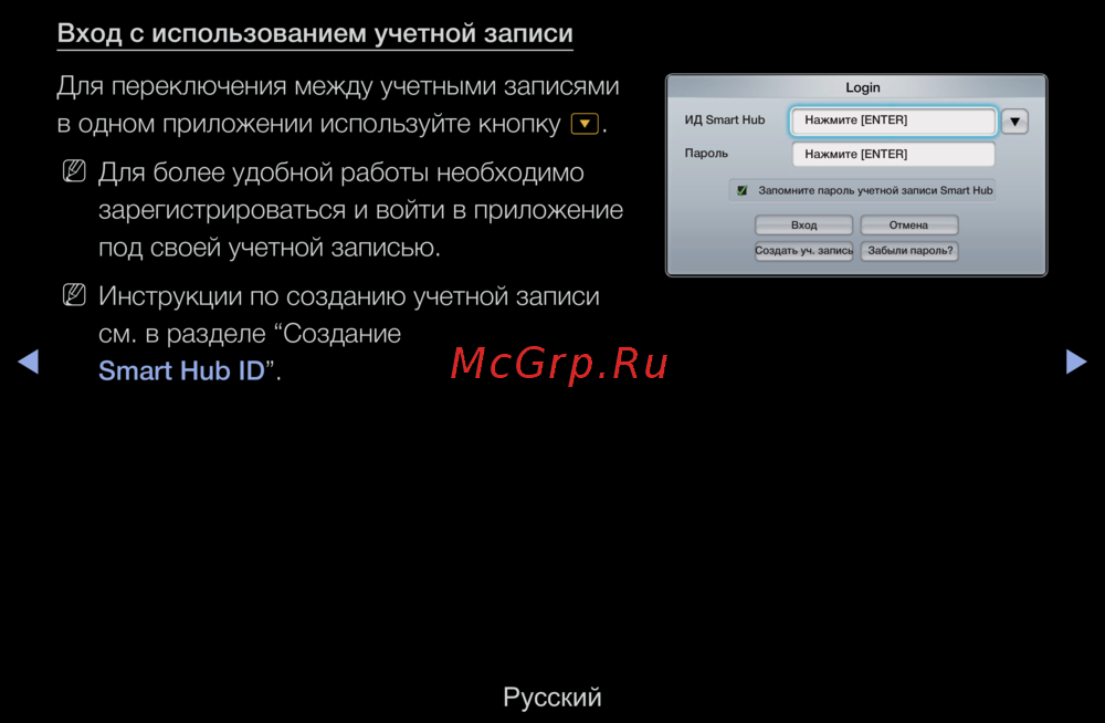 - Smart hub обеспечивает доступ ко всему содержимому которое хранится в одном месте эта функция помогает при выборе различного содержимого развлекательного характера обеспечивает управление средой развлекательных программ с помощью простого и понятного интерфейса пользователя предоставляет доступ к различным приложениям состав которых каждый день расширяется позволяет настроить систему тв путем группировки и сортировки приложений по своему усмотрению p.18