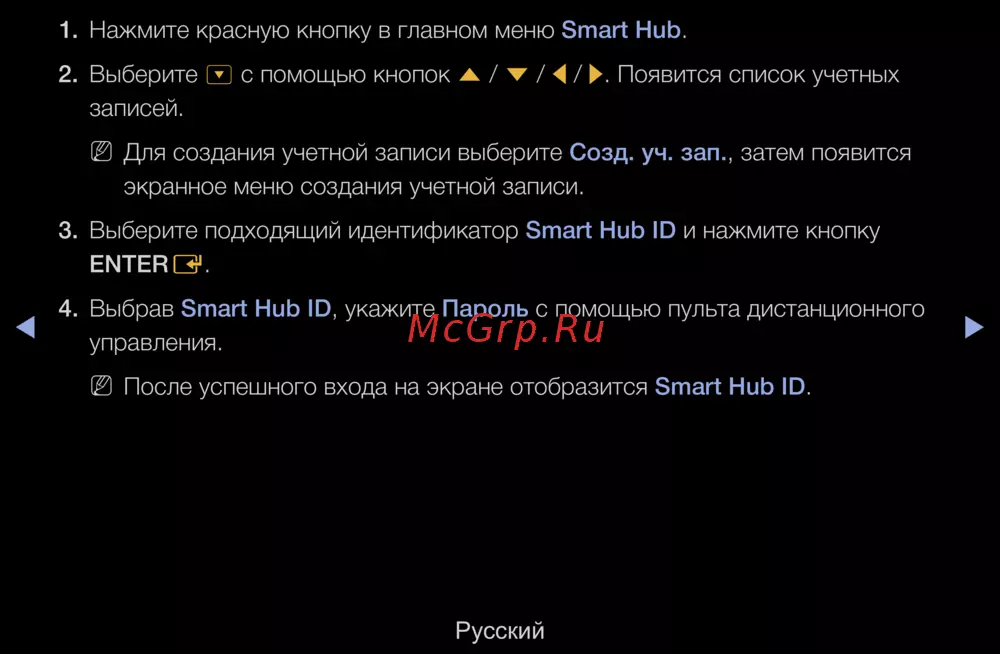 1. Нажмите красную кнопку в главном меню Smart Hub.