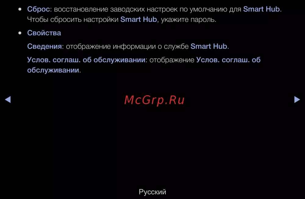 Сброс: восстановление заводских настроек по умолчанию для Smart Hub.