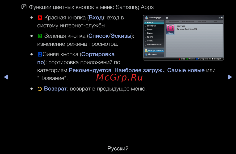 Samsung UE-40 D5520RW — функции цветных кнопок в меню приложений [211/319]