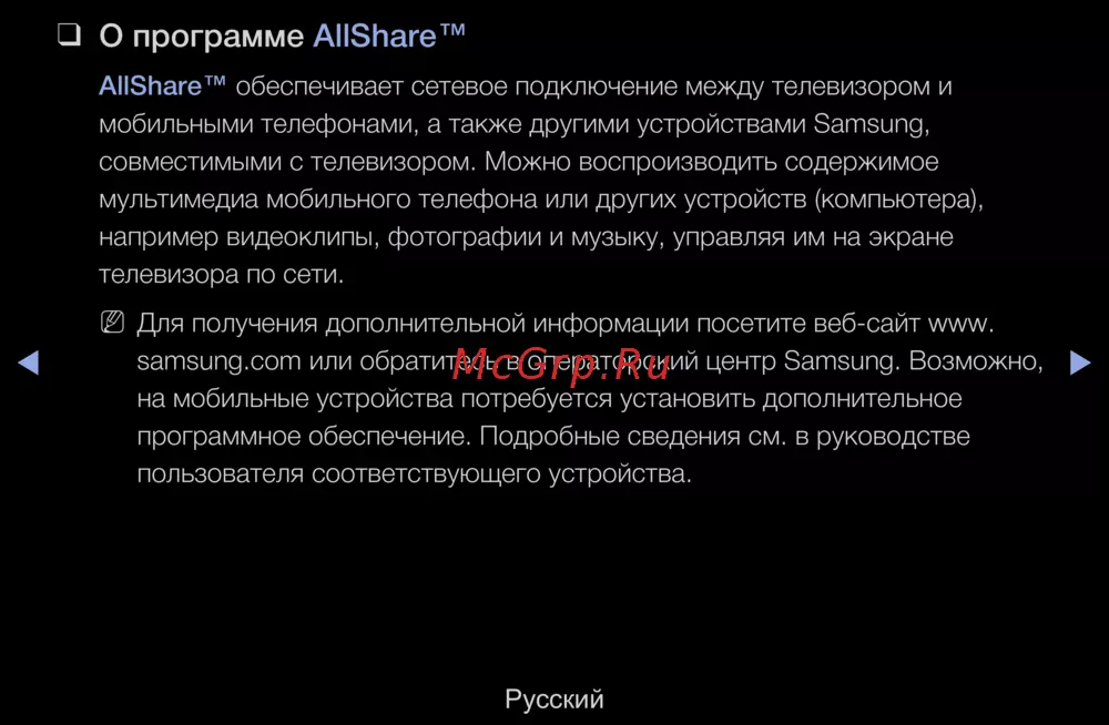- Allshare allshare обеспечивает сетевое подключение между телевизором и мобильными телефонами а также другими устройствами samsung совместимыми с телевизором p.18
