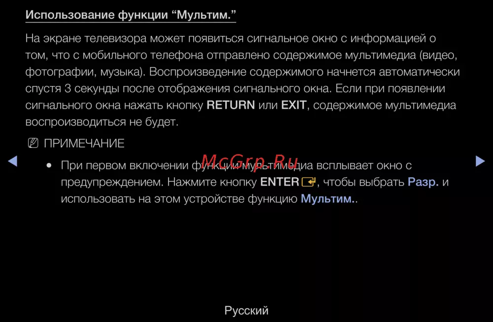 сигнального окна нажать кнопку RETURN или EXIT, содержимое мультимедиа