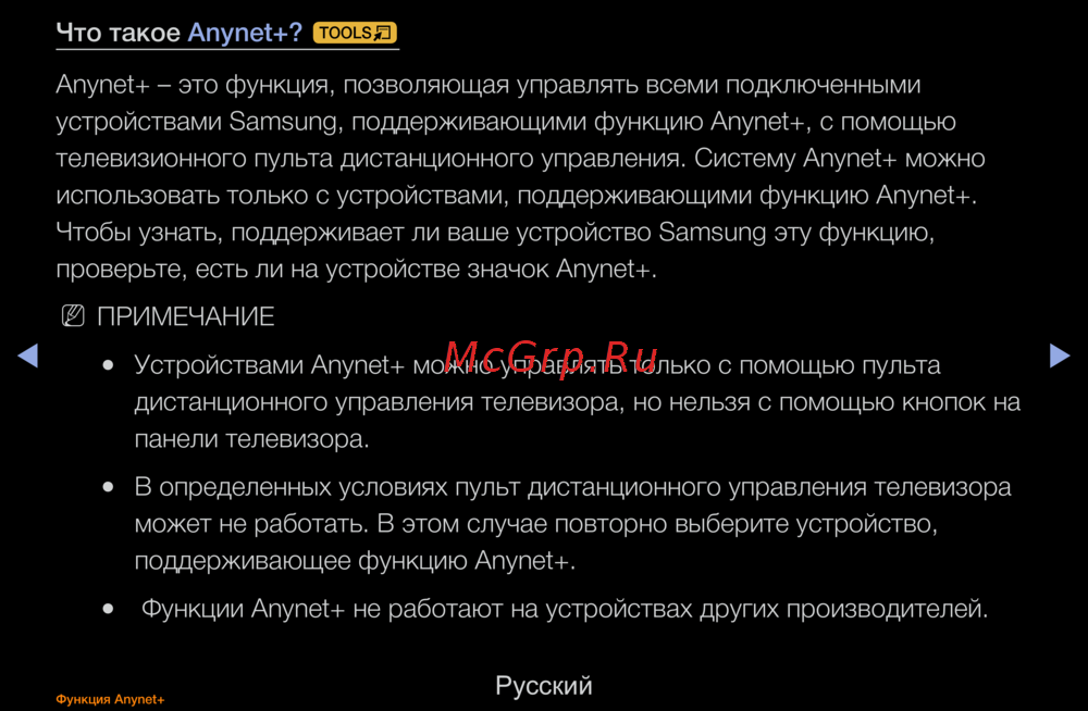 использовать только с устройствами, поддерживающими функцию Anynet+.
