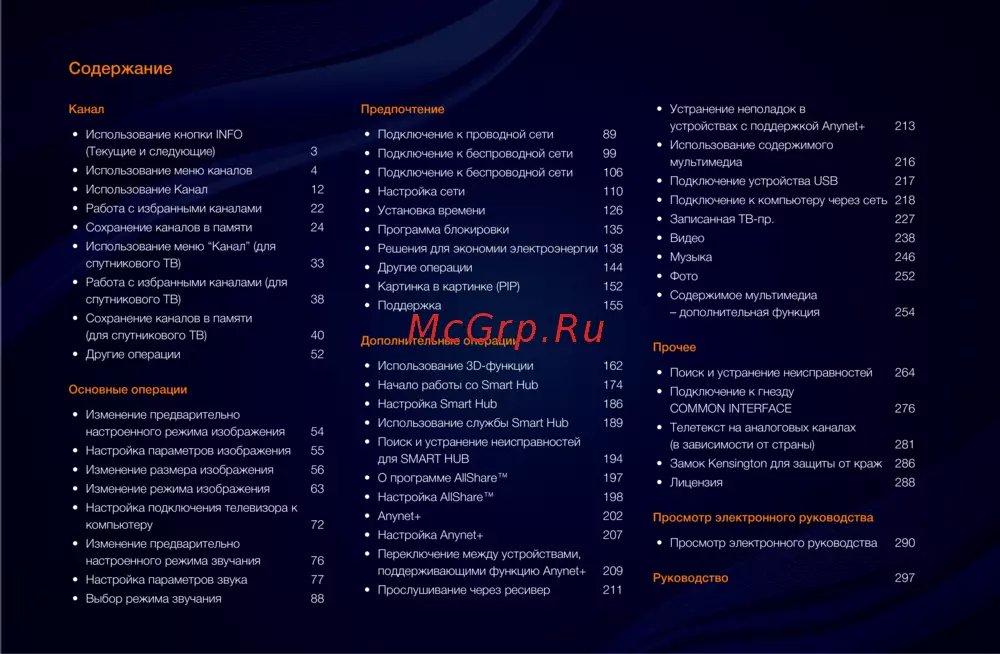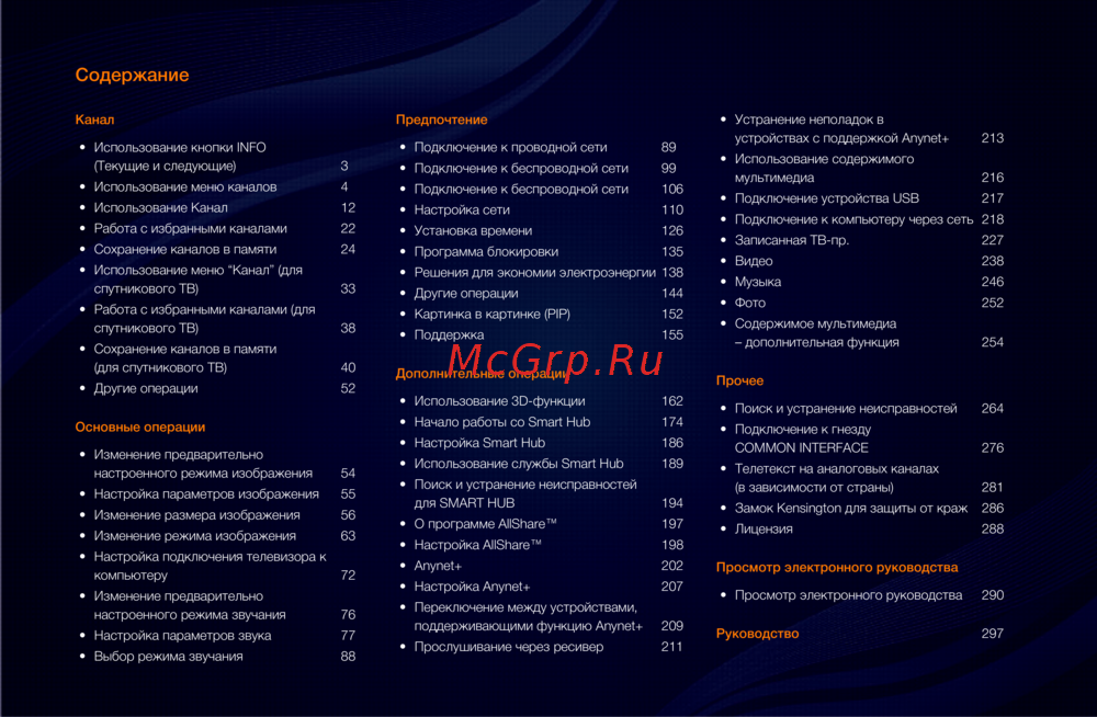 - Здесь можно найти сведения об основных функциях телевизора и инструкции по пользованию ими p.311