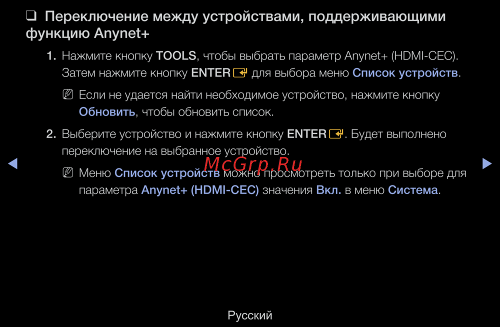 Samsung UE-40 D5520RW — как переключаться между устройствами с Anynet+ (HDMI-CEC) [230/319]