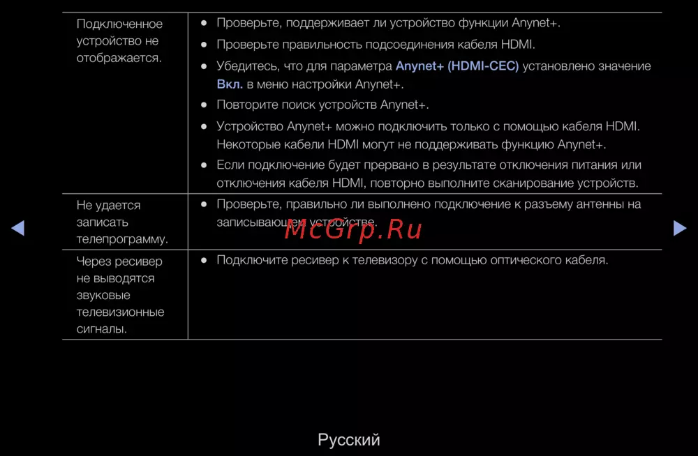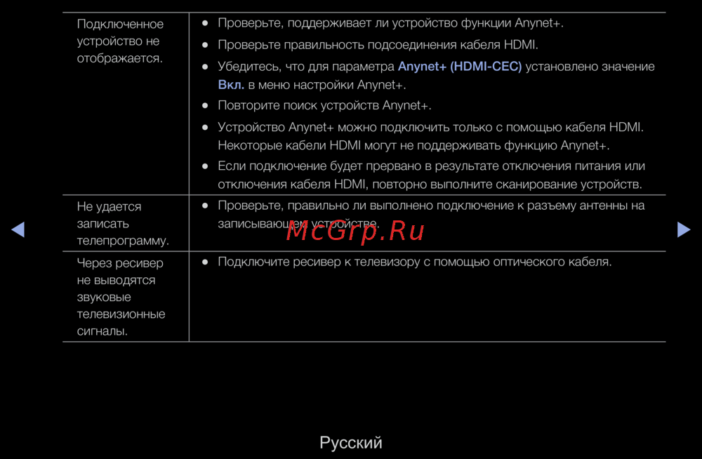 Некоторые кабели HDMI могут не поддерживать функцию Anynet+.
