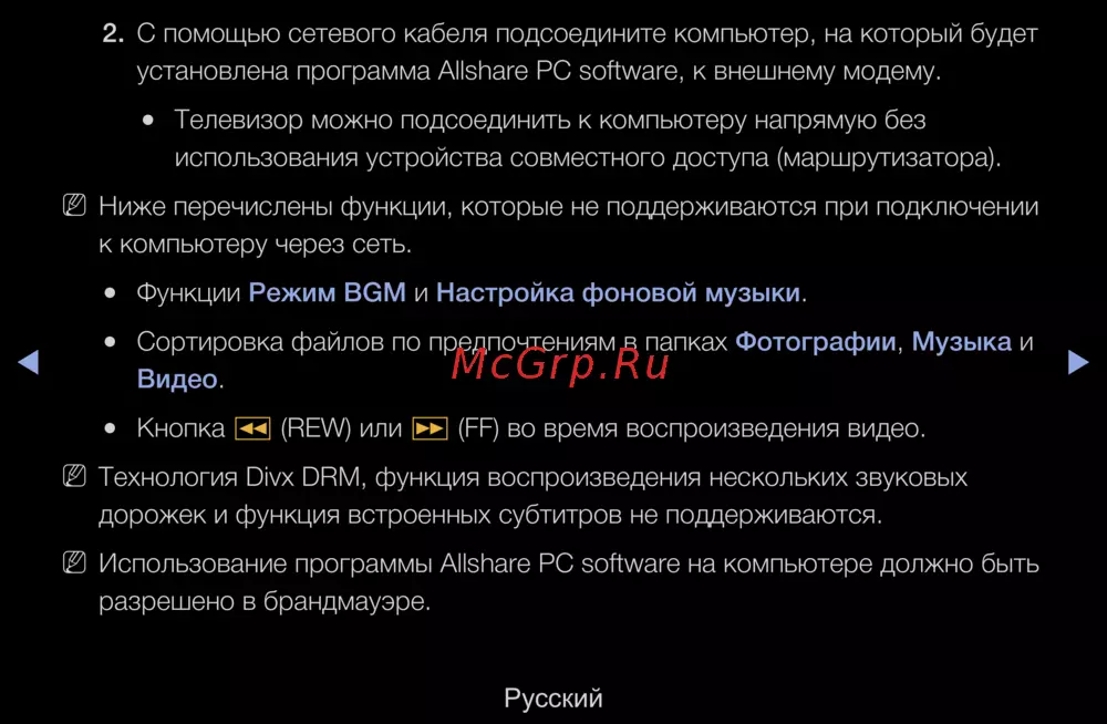 Samsung UE-40 D5520RW — подключение компьютера к телевизору через сетевой кабель [240/319]