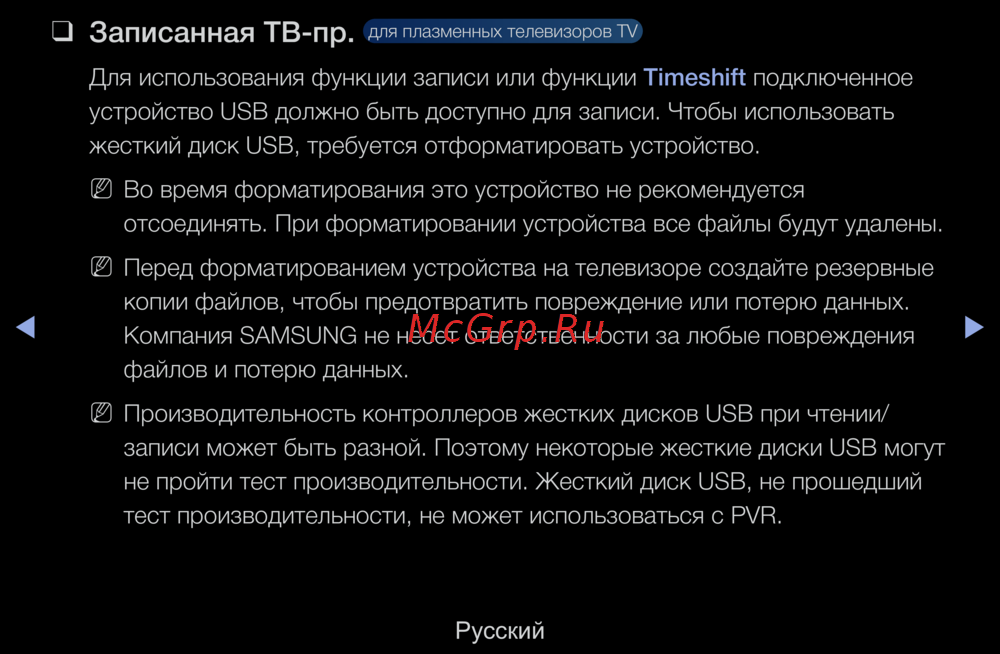 Узнайте, как подключить USB-устройство для записи и функции Timeshift на плазменных телевизорах. Важные советы по форматированию и резервному копированию.