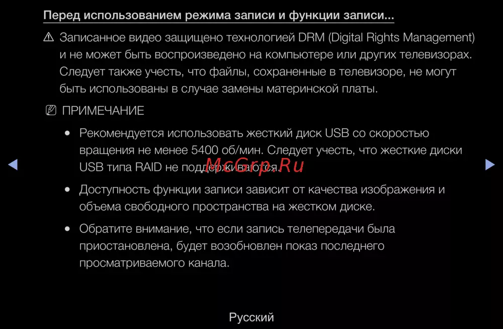 Следует также учесть, что файлы, сохраненные в телевизоре, не могут