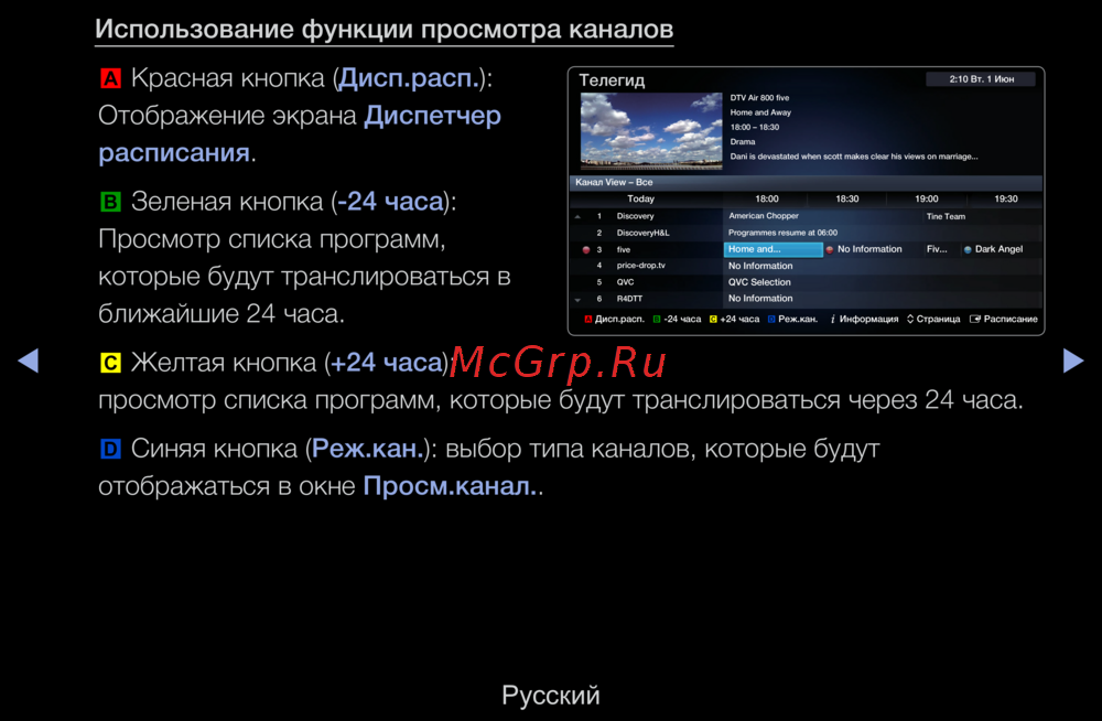 просмотр списка программ, которые будут транслироваться через 24 часа.