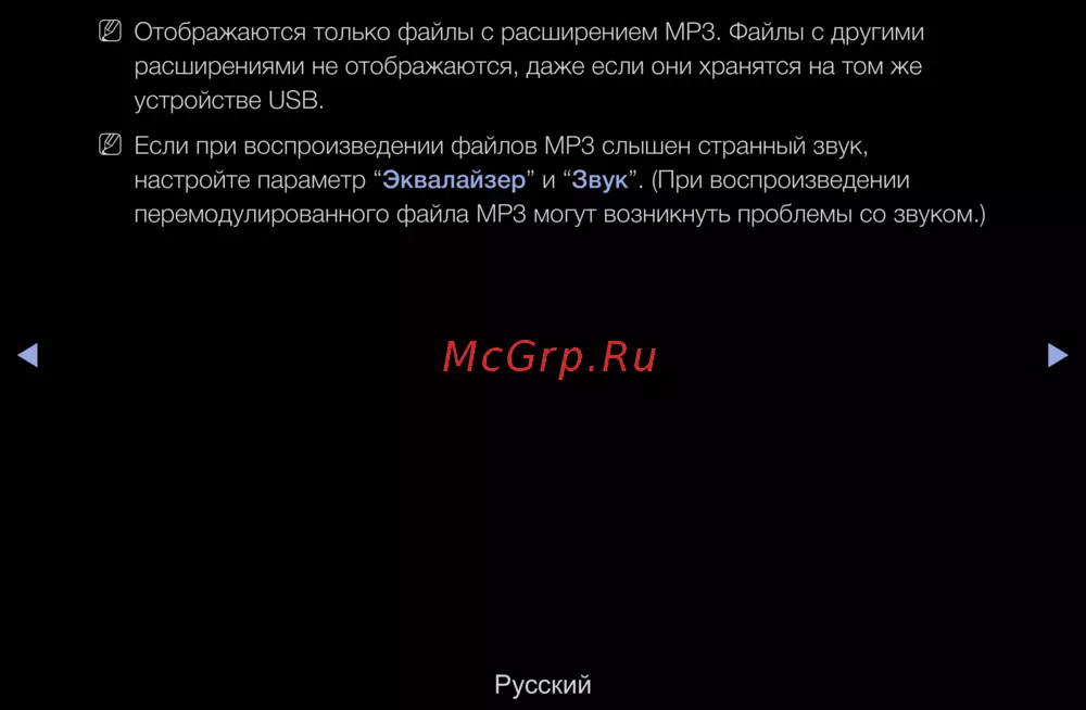 Отображаются только файлы с расширением MP3. Файлы с другими