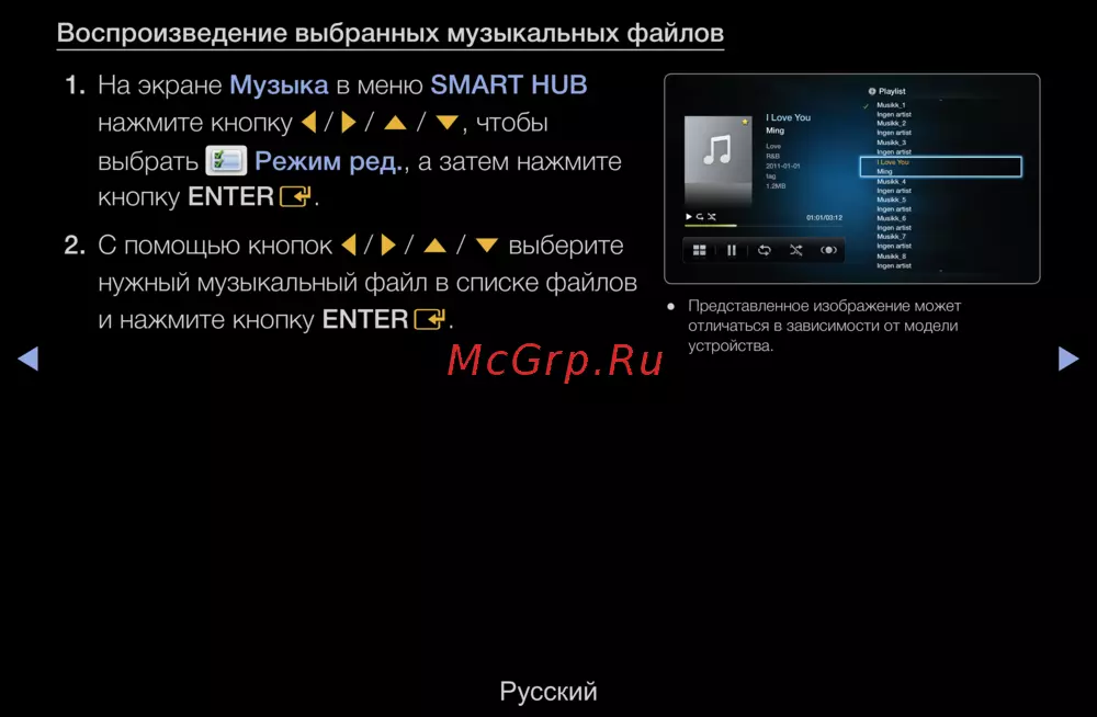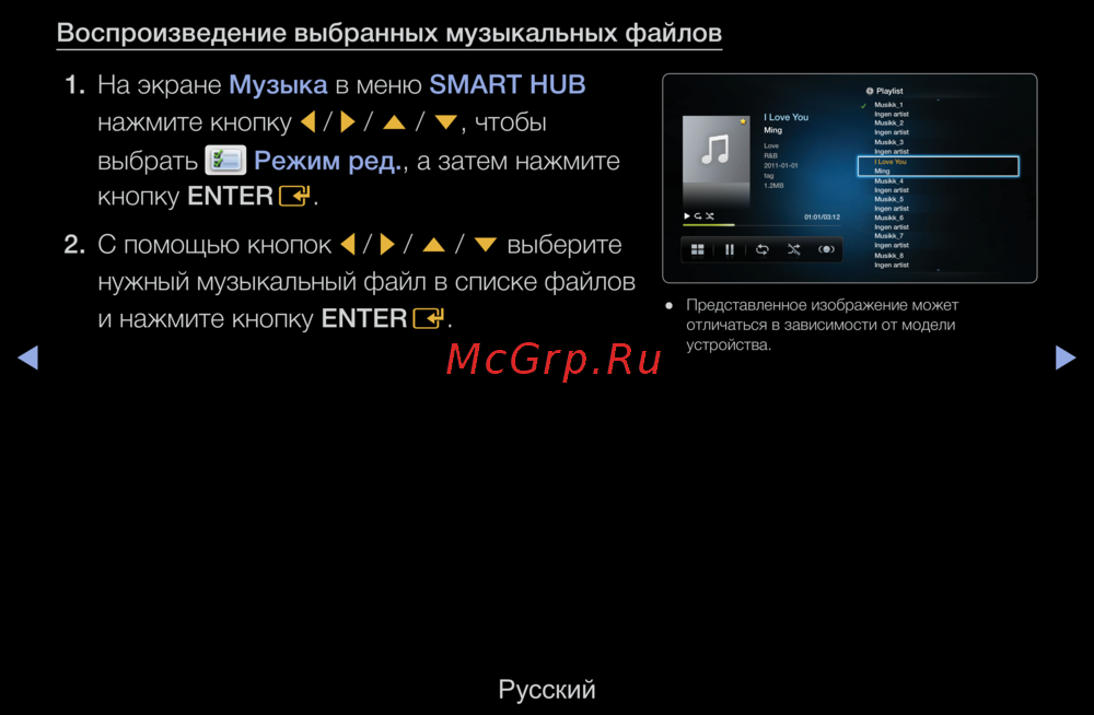 Узнайте, как легко воспроизводить музыкальные файлы на вашем устройстве с помощью меню SMART HUB. Следуйте простым шагам для выбора и редактирования плейлистов.