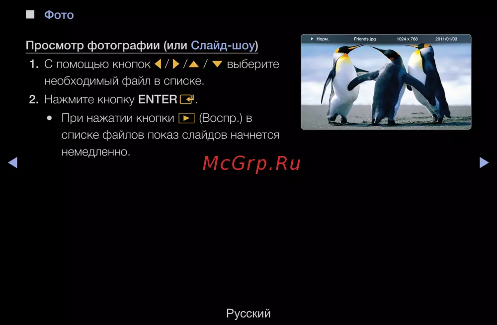 - Меню параметров воспроизведения видео музыки фотографий p.277