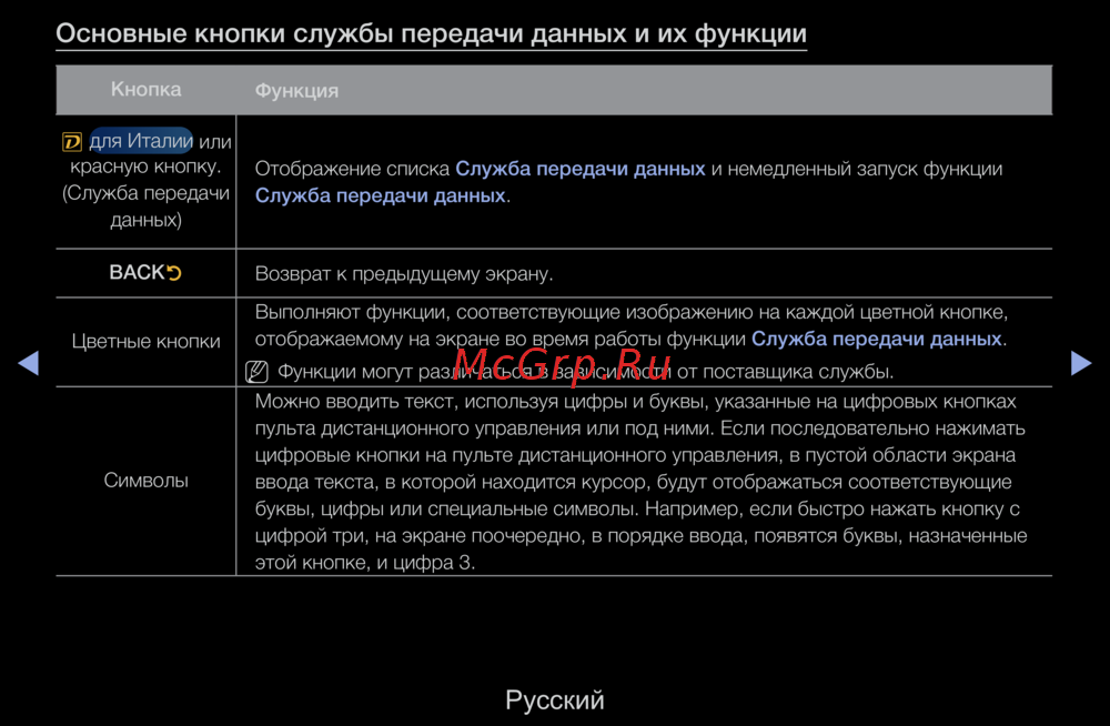 Samsung UE-40 D5520RW — основные кнопки и функции службы передачи данных [283/319]