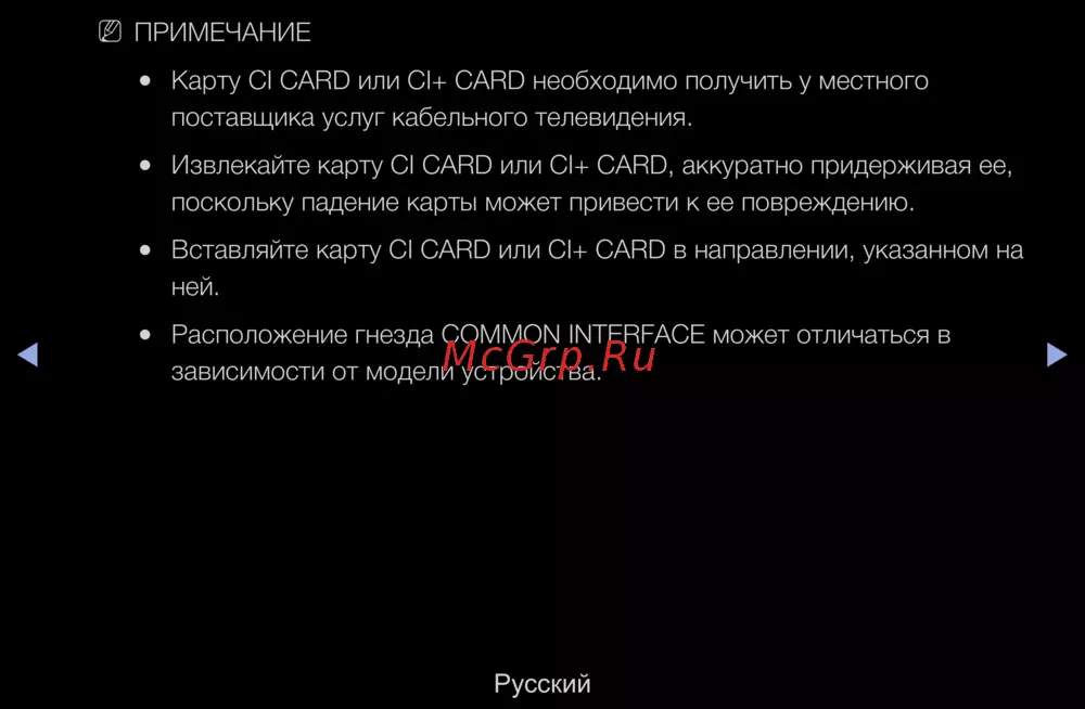 - Карту ci card или ci card необходимо получить у местного поставщика услуг кабельного телевидения p.300