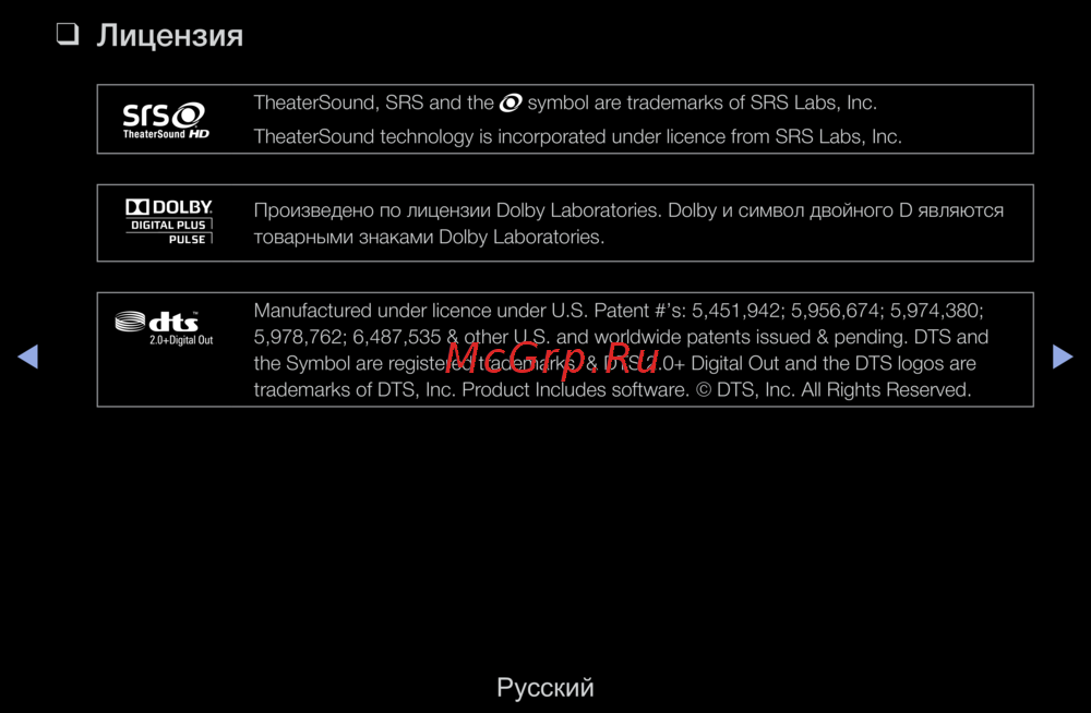 Samsung UE-40 D5520RW — лицензирование технологий звука и патенты на аудиопродукцию [309/319]