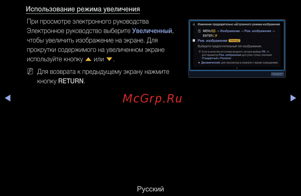 Samsung UE-40 D5520RW — как использовать режим увеличения в электронном руководстве [316/319]