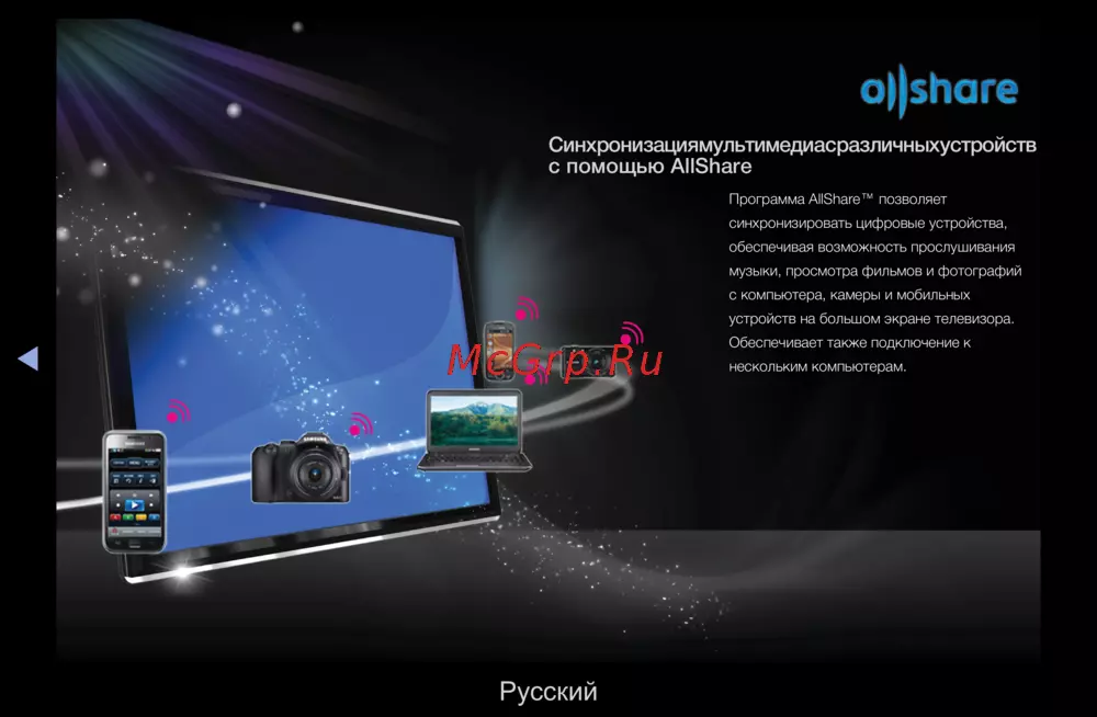 - Allshare allshare обеспечивает сетевое подключение между телевизором и мобильными телефонами а также другими устройствами samsung совместимыми с телевизором p.18