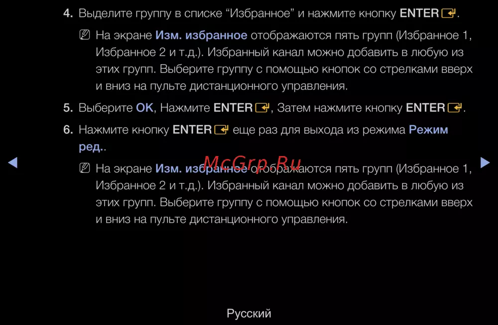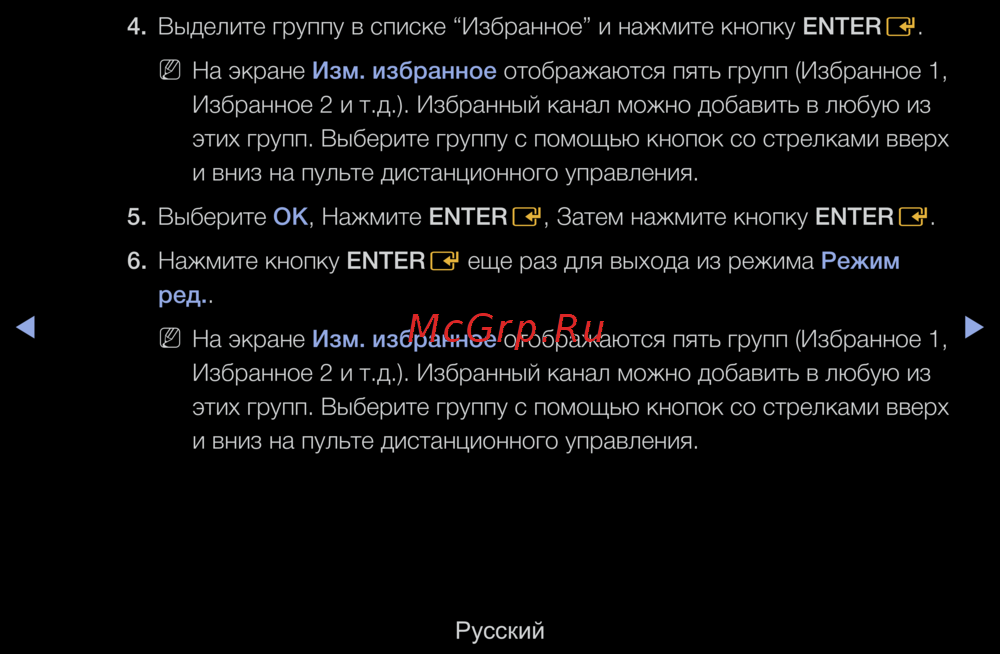 Samsung UE-40 D5520RW — как управлять избранными группами на пульте дистанционного управления [36/319]