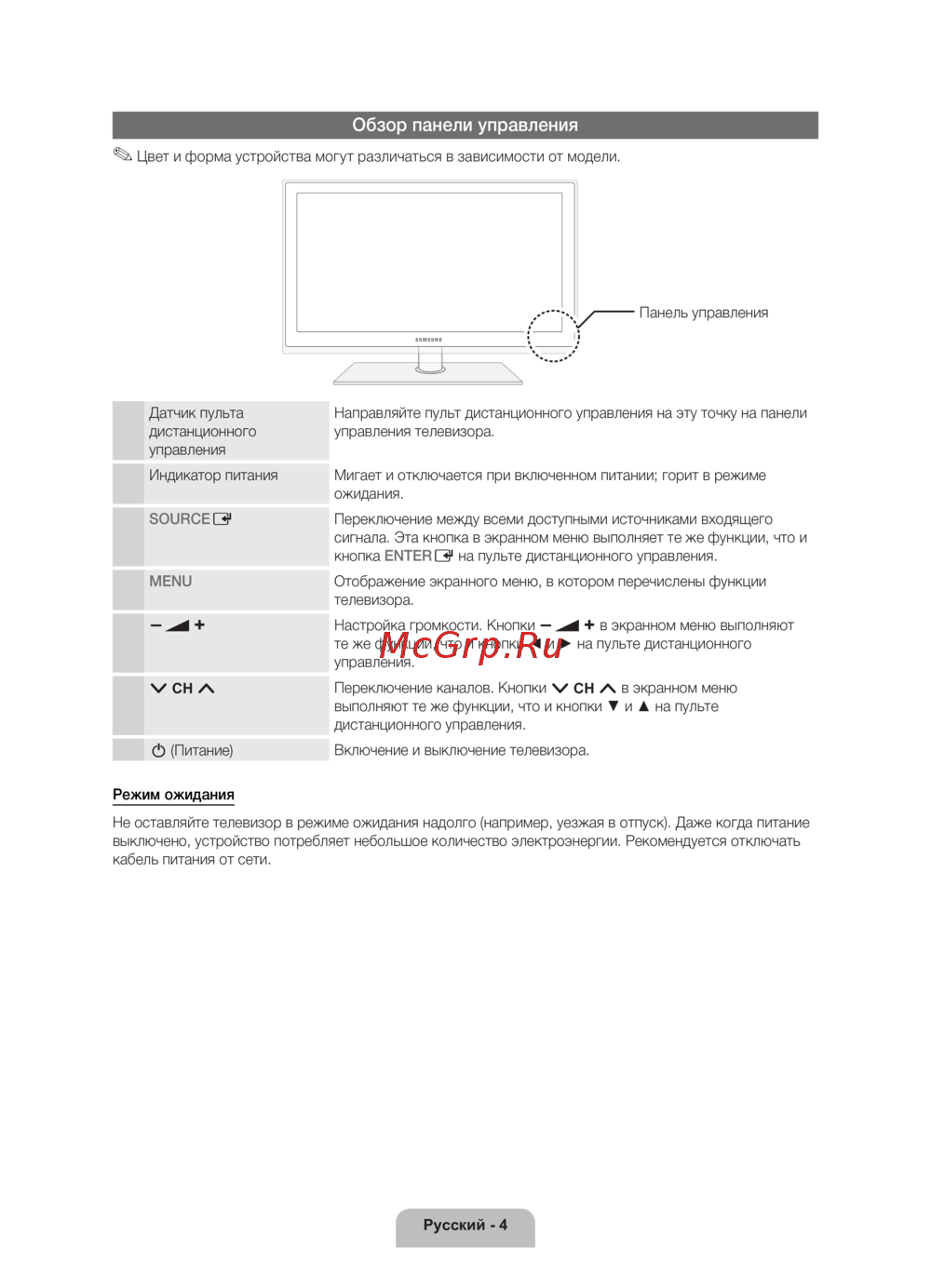 - Обзор панели управления p.4
