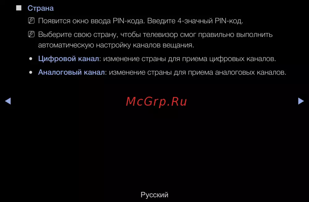Цифровой канал: изменение страны для приема цифровых каналов.