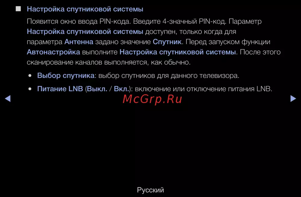 Настройка спутниковой системы доступен, только когда для