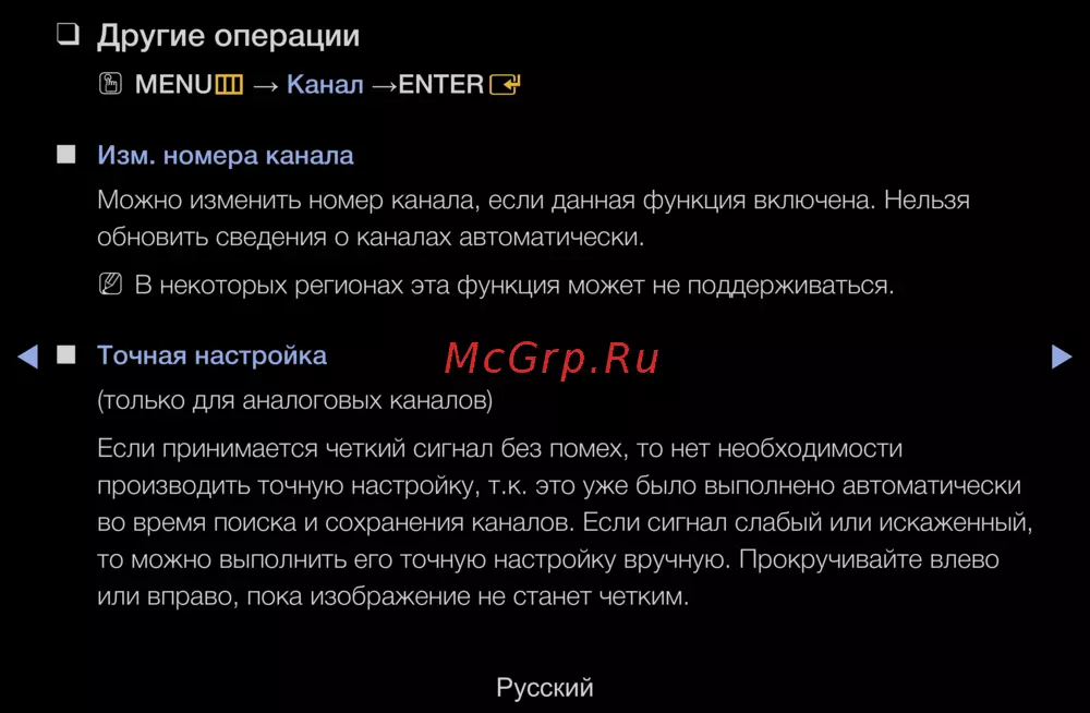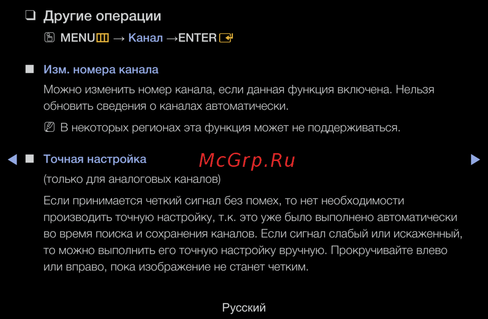 (только для аналоговых каналов)
