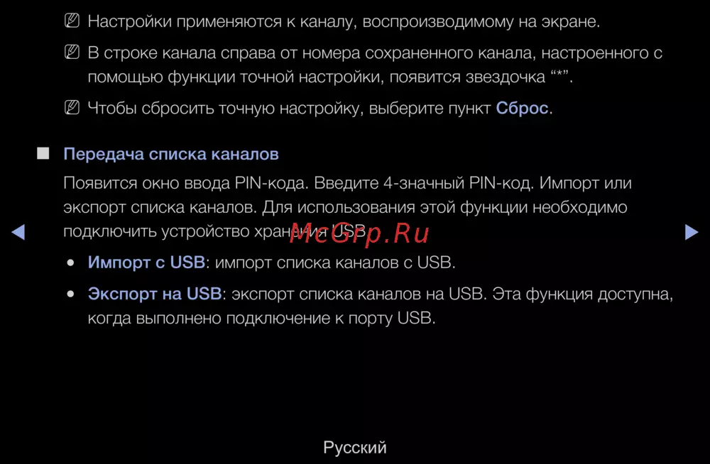 Samsung UE-40 D5520RW — настройки канала, передача списков через USB с PIN-кодом — инструкция [74/319]