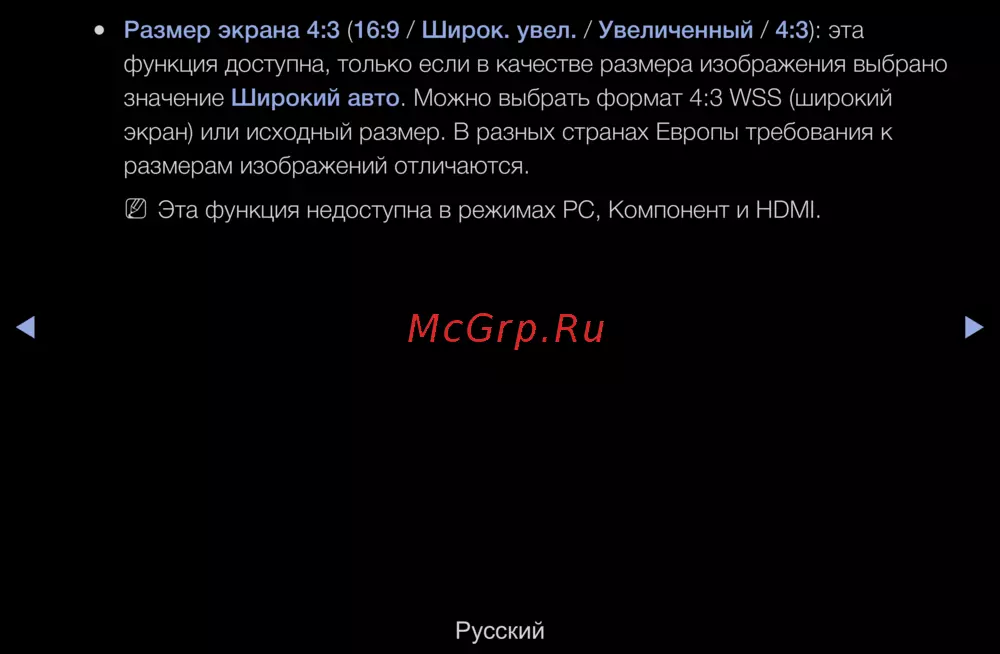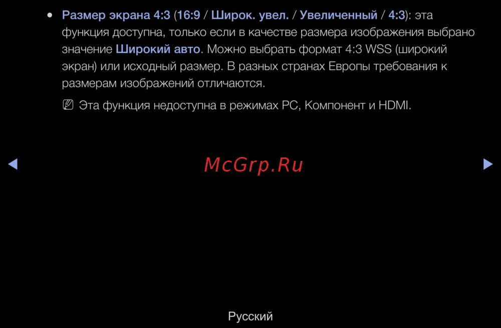 Размер экрана 4:3 (16:9 / Широк. увел. / Увеличенный / 4:3): эта