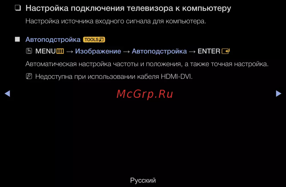 Недоступна при использовании кабеля HDMI-DVI.