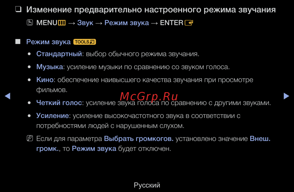 Samsung UE-40 D5520RW — настройка режимов звучания для оптимального прослушивания [97/319]