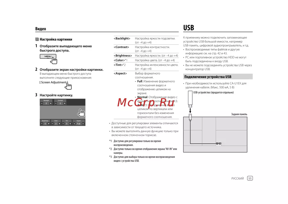 *2 Доступно только во время отображения экрана “AV-IN” или
