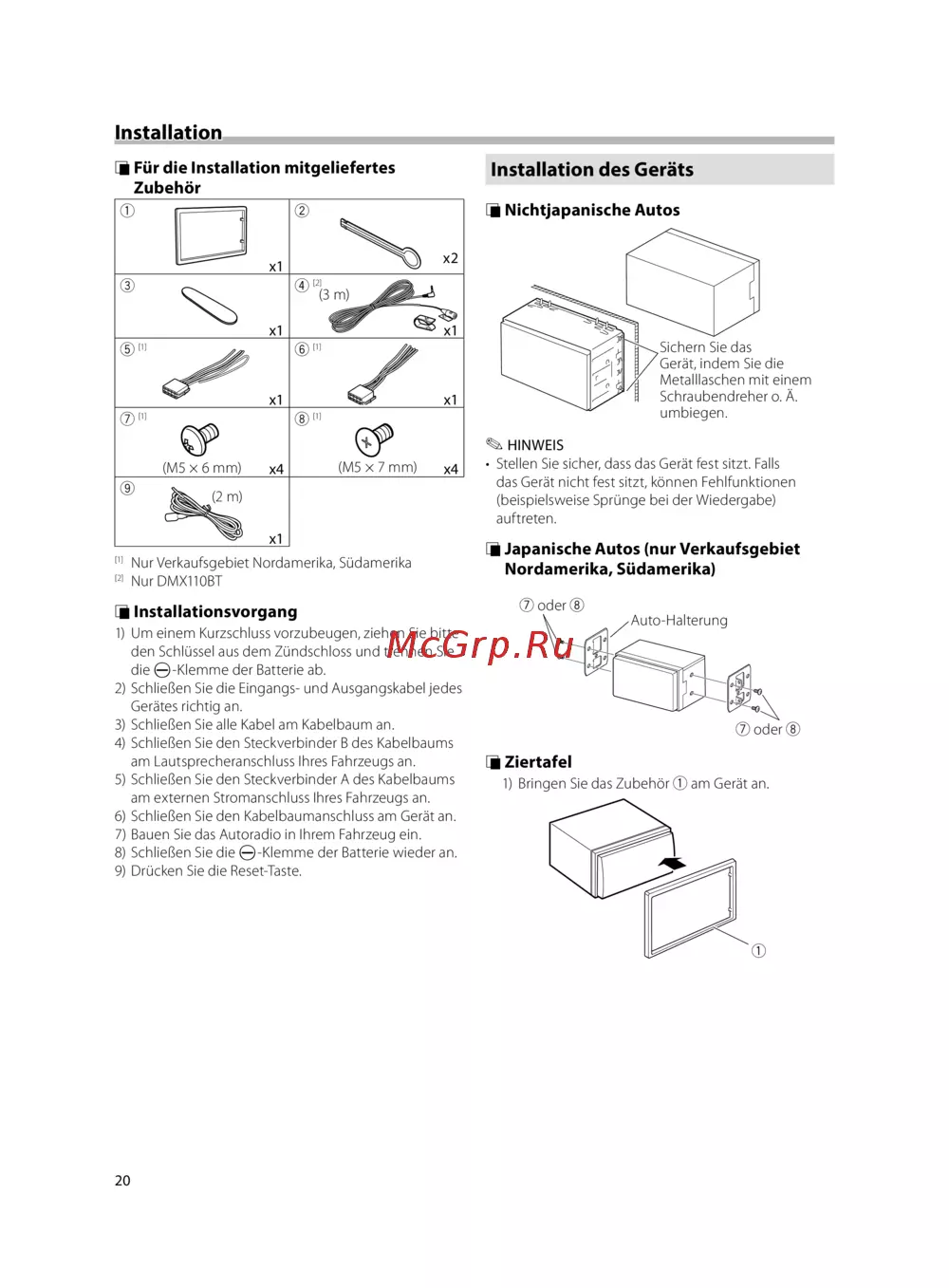 Kenwood DMX110 — anleitung zur Installation von Audio-Geräten im Fahrzeug [20/136]
