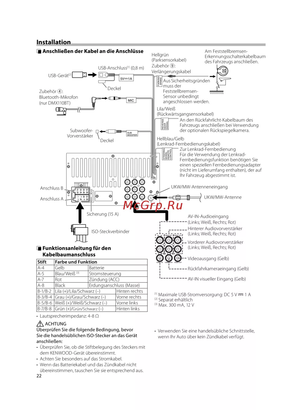 Kenwood DMX110 [22/136] Ñ funktionsanleitung für den kabelbaumanschluss