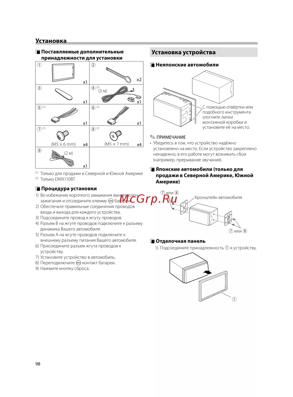 ![Kenwood DMX110 [98/136] Установка устройства](/views2/1377562/page98/bg62.png)
